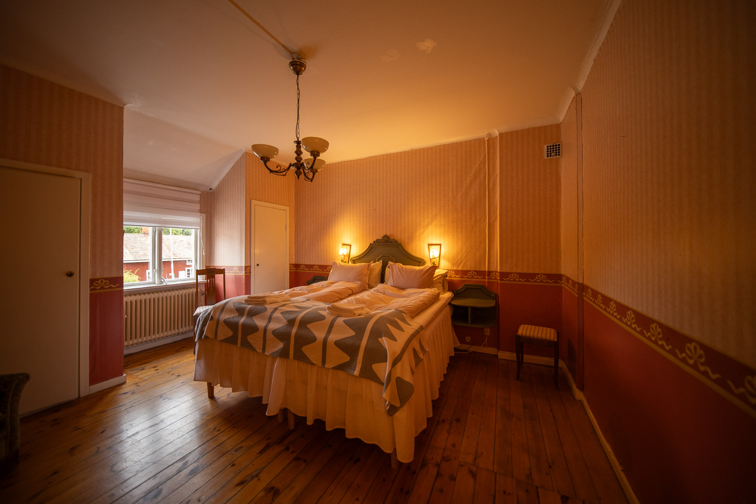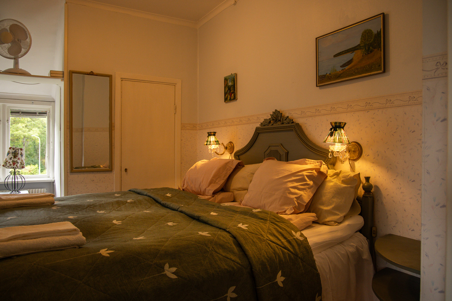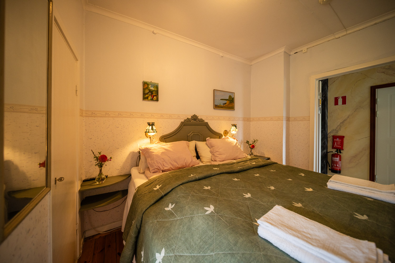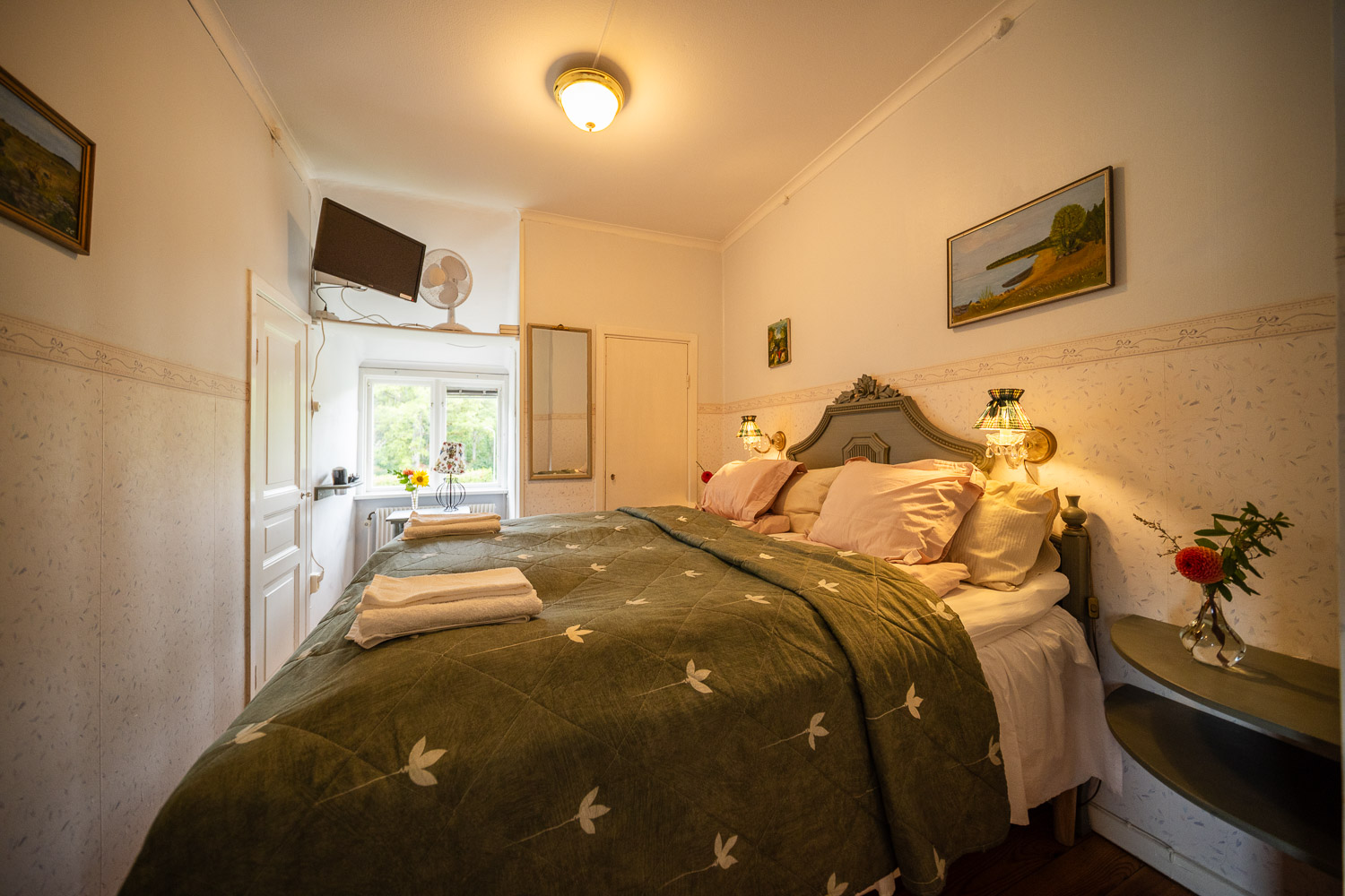 Klassiskt dubbelrum med eget badkar och toalett på rummet.