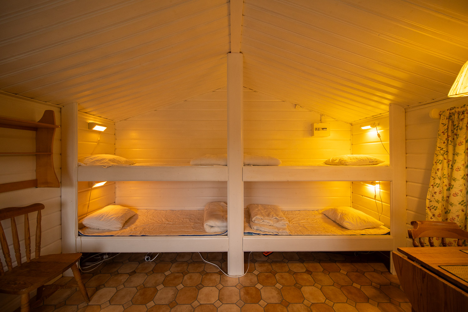 Mycket enkel stuga med två våningssängar, plats för 4 personer.